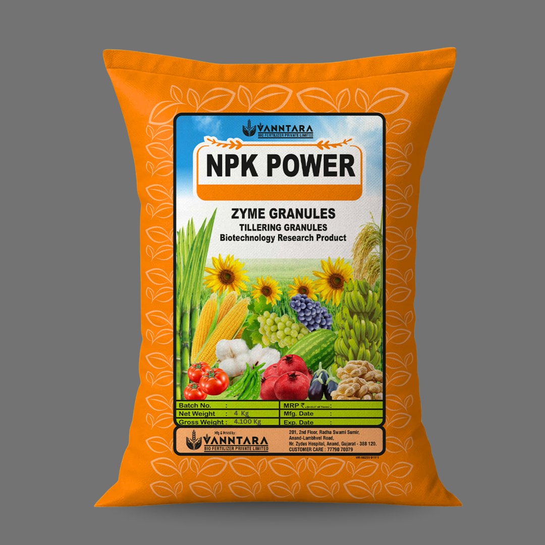 NPK Power Zyme Granules improve root development, tillering, and nutrient absorption naturally, enhancing crop growth and productivity. It strengthens plants, improves soil fertility, and ensures healthier, higher yields.